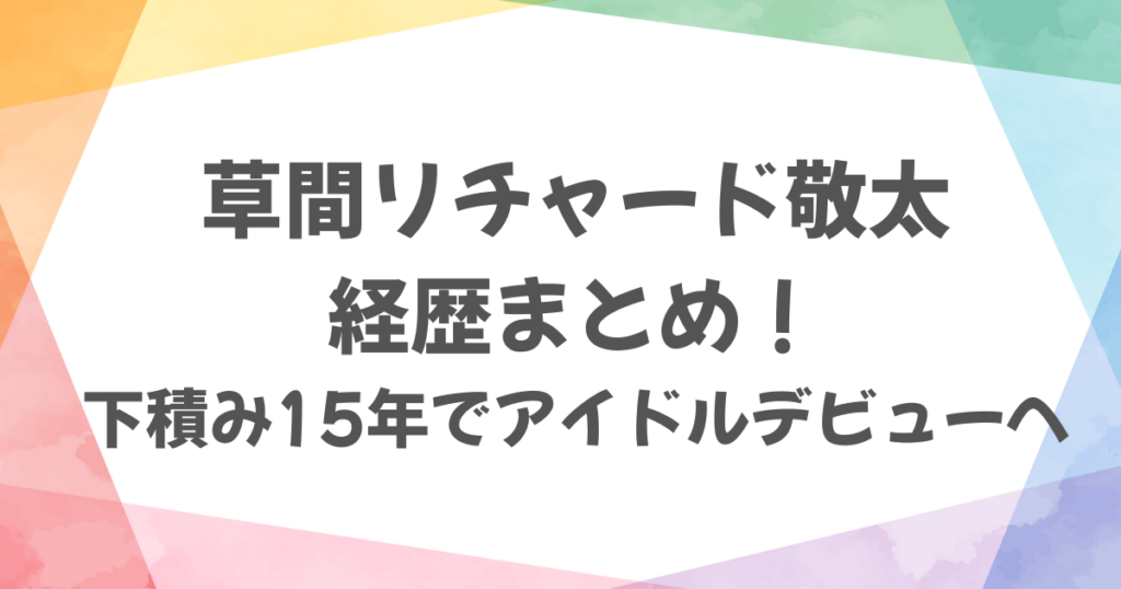 草間リチャード敬太の経歴とは?下積み15年のアイドルデビュー!