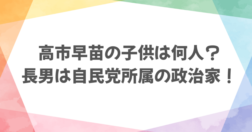 高市早苗さんは女性政治家として長年国政で活躍し、総裁候補としても注目されてきました。 そんな高市早苗さんについて「子供は何人いるの?」と気になる人が少なくありません。 ネットでは長男が政治家という話題もあり、家族の関係に注目が集まっていま... -